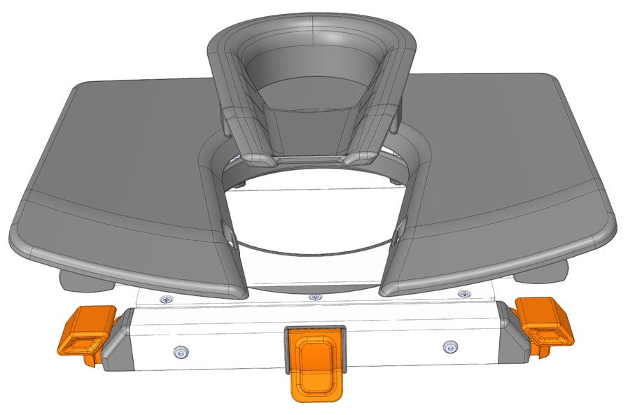 b: Open clamps to fit over rail
