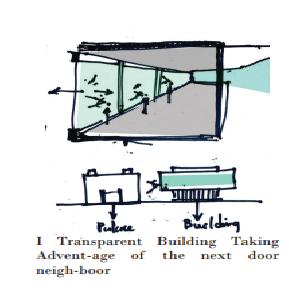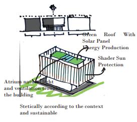 The Building will reflect its context by the exterior double layer facade the construction will seem light and transparent.