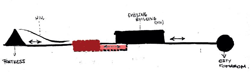Existing Infrastructure on the site and struc tural status of the Buildings. Komaróm, Fortress Sketch.URBAN PLAN PROPOSAL CITY - SCALE CONNECTIVITY.