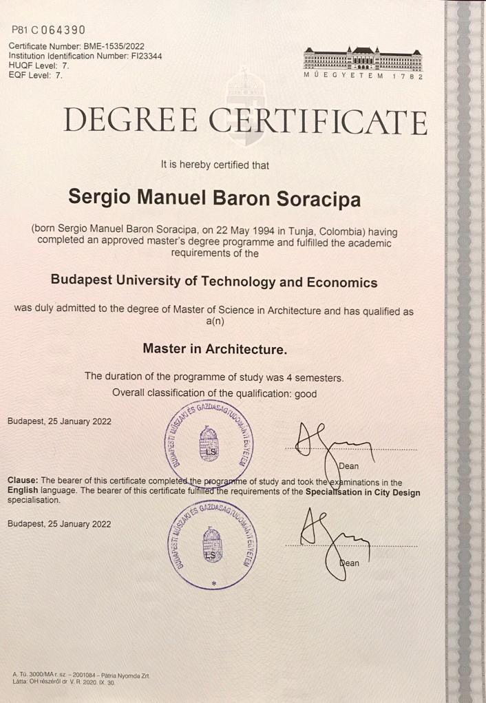 2019 / 2021 - MSc Architecture. Awarded Scholarship. GPA 4.4/5. Budapest, Hungary Budapest University of Technology and Economics.