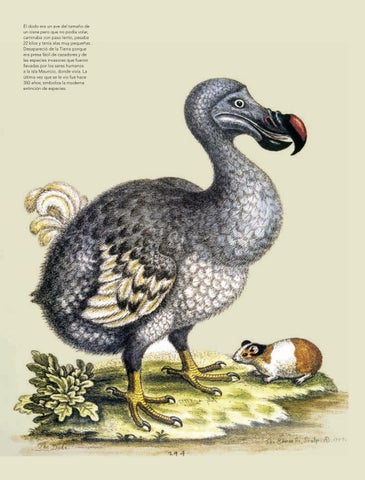 El dodo era un ave del tamaño de un cisne pero que no podía volar, caminaba con paso lento, pesaba 22 kilos y tenía alas muy pequeñas. Desapareció de la Tierra porque era presa fácil de cazadores y de las especies invasoras que fueron llevadas por los seres humanos a la isla Mauricio, donde vivía. La última vez que se le vio fue hace 350 años; simboliza la moderna extinción de especies.