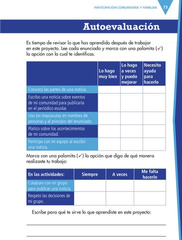 Colaboro con mi grupo para publicar una noticia. Respeto las decisiones de mi grupo. Escribe para qué te sirve lo que aprendiste en este proyecto: