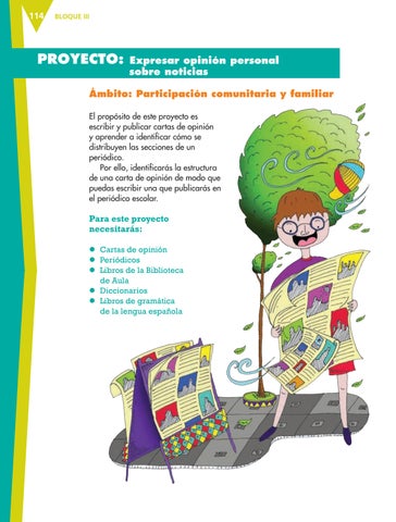 Ámbito: Participación comunitaria y familiar El propósito de este proyecto es escribir y publicar cartas de opinión y aprender a identificar cómo se distribuyen las secciones de un periódico. Por ello, identificarás la estructura de una carta de opinión de modo que puedas escribir una que publicarás en el periódico escolar.