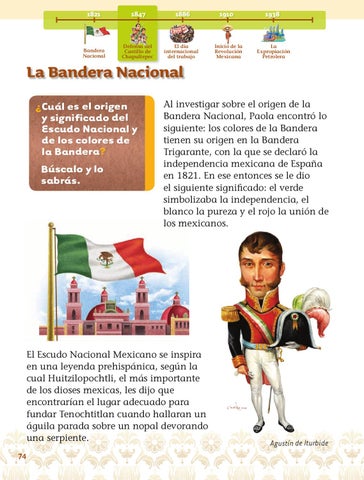 Al investigar sobre el origen de la Bandera Nacional, Paola encontró lo siguiente: los colores de la Bandera tienen su origen en la Bandera Trigarante, con la que se declaró la independencia mexicana de España en 1821. En ese entonces se le dio el siguiente significado: el verde simbolizaba la independencia, el blanco la pureza y el rojo la unión de los mexicanos.