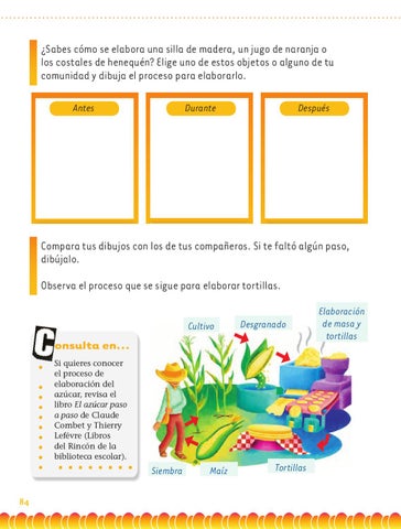 onsulta en... Si quieres conocer el proceso de elaboración del azúcar, revisa el libro El azúcar paso a paso de Claude Combet y Thierry Lefévre (Libros del Rincón de la biblioteca escolar).