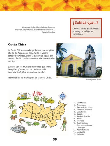 Costa Chica La Costa Chica es una larga llanura que empieza al este de Acapulco y llega hasta el vecino estado de Oaxaca, al sur la bañan las aguas del océano Pacífico y al norte tiene a la Sierra Madre del Sur. ¿Cuáles son los municipios con los que limita la región? ¿Cuáles son las ciudades más importantes? ¿Qué se produce en ella? Identifica los 15 municipios de la Costa Chica.