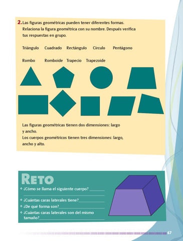 2. Las figuras geométricas pueden tener diferentes formas . Relaciona la figura geométrica con su nombre . Después verifica tus respuestas en grupo . Triángulo