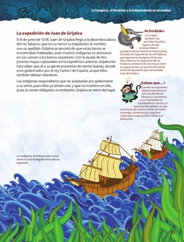 Actividades Los mapas también nos permiten localizar lugares donde se desarrollaron acontecimientos históricos importantes. Consulta el mapa de los ríos de Tabasco que aparece en la página 20 de este libro, observa la trayectoria del río Grijalva y señala el sitio en el que vierte sus aguas al mar, ya que fue ahí donde arribó la tripulación que comandaba Juan de Grijalva.