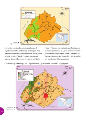 Observa el siguiente mapa de la vegetación de Aguascalientes y contesta las preguntas.