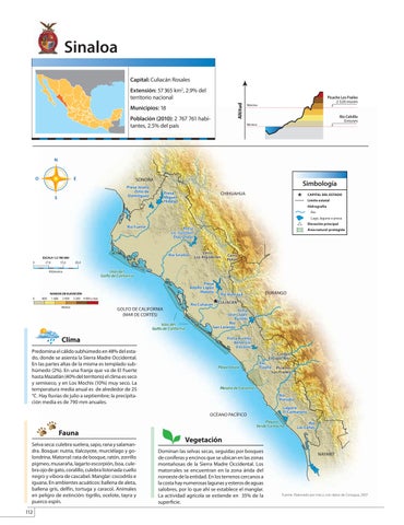 Vegetación Dominan las selvas secas, seguidas por bosques de coníferas y encinos que se ubican en las zonas montañosas de la Sierra Madre Occidental. Los matorrales se encuentran en la zona árida del noroeste de la entidad. En los terrenos cercanos a la costa hay numerosas lagunas y esteros de aguas salobres, por lo que ahí se establece el manglar. La actividad agrícola se extiende en 35% de la superficie.