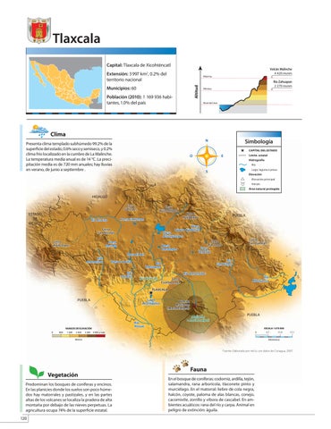 Vegetación Predominan los bosques de coníferas y encinos. En las planicies donde los suelos son poco húmedos hay matorrales y pastizales, y en las partes altas de los volcanes se localiza la pradera de alta montaña por debajo de las nieves perpetuas. La agricultura ocupa 74% de la superficie estatal.