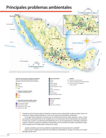 Cuando la acción humana sobre el ambiente es intensa y poco responsable, se afecta el agua, el aire o el suelo de los lugares donde habitamos, a esto se le conoce como problemas ambientales. En el agua estos problemas se asocian con la contaminación de ríos, lagos, lagunas y mares. El aire se contamina, particularmente en las ciudades, por la concentración de los automóviles y las industrias. El suelo, por su parte, se contamina principalmente por el uso de agroquímicos, pesticidas y desechos urbanos. Además, se generan problemas ambientales por los incendios forestales, la pérdida de vegetación original y por el inadecuado manejo de los suelos. ¿Cuáles consideras que son los problemas ambientales más importantes de tu entidad? ¿Qué acciones realizas para disminuir los problemas ambientales en el agua, en el aire y en el suelo del lugar donde vives?