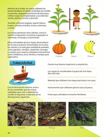 Fueron muy buenos ingenieros y arquitectos. Los mayas lo consideraban la gracia de Yum Kaax, dios del maíz. Material que utilizaron los mayas para hacer sus casas. Con la información anterior, acerca de las actividades que los mayas realizaban para vivir y alimentarse, escribe la respuesta a cada una de las descripciones siguientes.