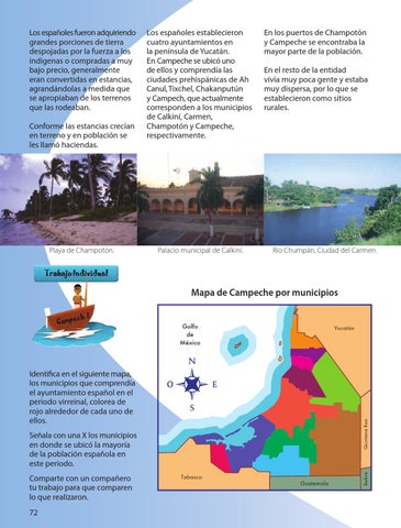 Señala con una X los municipios en donde se ubicó la mayoría de la población española en este periodo. Comparte con un compañero tu trabajo para que comparen lo que realizaron.