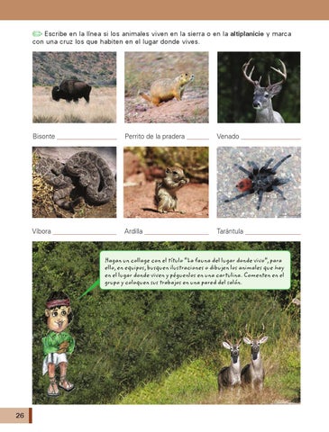 Escribe en la línea si los animales viven en la sierra o en la altiplanicie y marca con una cruz los que habiten en el lugar donde vives.