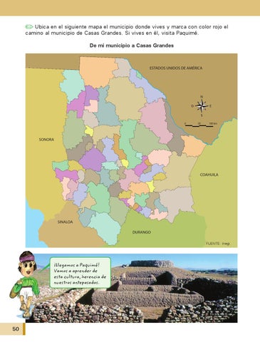 Ubica en el siguiente mapa el municipio donde vives y marca con color rojo el camino al municipio de Casas Grandes. Si vives en él, visita Paquimé. De mi municipio a Casas Grandes