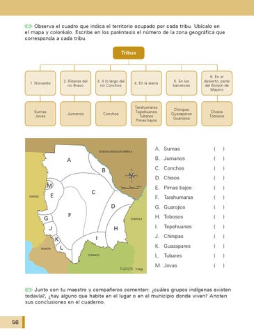 Observa el cuadro que indica el territorio ocupado por cada tribu. Ubícalo en el mapa y coloréalo. Escribe en los paréntesis el número de la zona geográfica que corresponda a cada tribu. Tribus