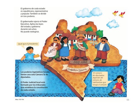 El gobierno de cada estado es republicano, representativo y popular. También se divide en tres poderes. El gobernador ejerce el Poder Ejecutivo. Aplica las leyes del estado y gobierna durante seis años. No puede reelegirse.