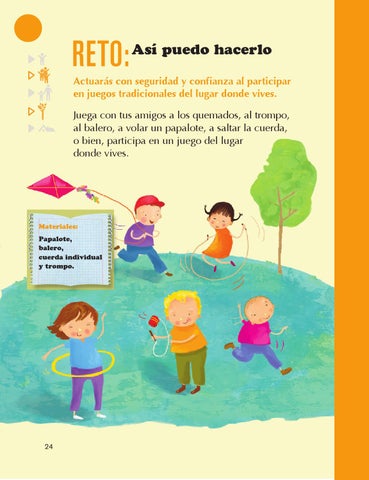 ActuarĂĄs con seguridad y confianza al participar en juegos tradicionales del lugar donde vives. Juega con tus amigos a los quemados, al trompo, al balero, a volar un papalote, a saltar la cuerda, o bien, participa en un juego del lugar donde vives.