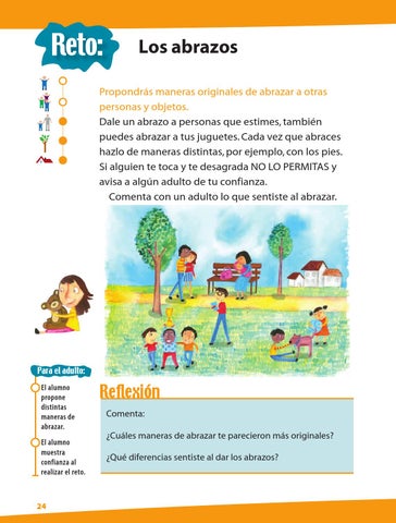 Para el adulto: El alumno propone distintas maneras de abrazar. El alumno muestra confianza al realizar el reto.