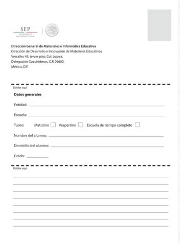 Dirección General de Materiales e Informática Educativa Dirección de Desarrollo e Innovación de Materiales Educativos Versalles 49, tercer piso, Col. Juárez, Delegación Cuauhtémoc, C.P. 06600, México, D.F.