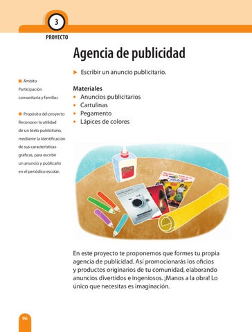 En este proyecto te proponemos que formes tu propia agencia de publicidad. Así promocionarás los oficios y productos originarios de tu comunidad, elaborando anuncios divertidos e ingeniosos. ¡Manos a la obra! Lo único que necesitas es imaginación.