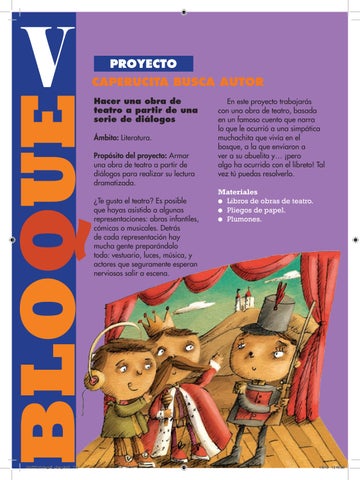 En este proyecto trabajarás con una obra de teatro, basada en un famoso cuento que narra lo que le ocurrió a una simpática muchachita que vivía en el bosque, a la que enviaron a ver a su abuelita y… ¡pero algo ha ocurrido con el libreto! Tal vez tú puedas resolverlo. Materiales l Libros de obras de teatro. l Pliegos de papel. l Plumones.