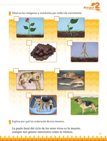 Explica por qué las ordenaste de esa manera. La parte final del ciclo de los seres vivos es la muerte, aunque nos genere emociones como la tristeza.