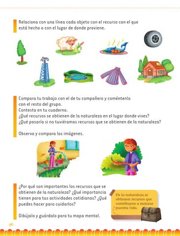 Compara tu trabajo con el de tu compañero y coméntenlo con el resto del grupo. Contesta en tu cuaderno. ¿Qué recursos se obtienen de la naturaleza en el lugar donde vives? ¿Qué pasaría si no tuviéramos recursos que se obtienen de la naturaleza? Observa y compara las imágenes.
