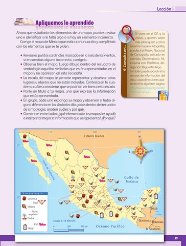 Si vives en el DF, o lo visitas, y quieres saber más sobre quién y cómo hace los mapas (cartografía), puedes ir al Museo Nacional de Cartografía, ubicado en avenida Observatorio 94, esquina con Periférico, delegación Miguel Hidalgo. También puedes acudir a los centros de información del inegi, cuyas direcciones aparecen en la siguiente página: http://www.inegi.org.mx/lib/ informacion.asp.