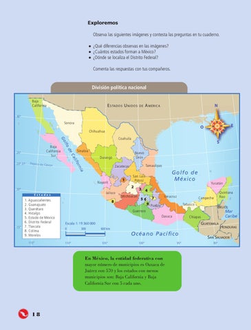 Exploremos Observa las siguientes imágenes y contesta las preguntas en tu cuaderno. ¿Qué diferencias observas en las imágenes? ¿Cuántos estados forman a México? ¿Dónde se localiza el Distrito Federal? Comenta las respuestas con tus compañeros.