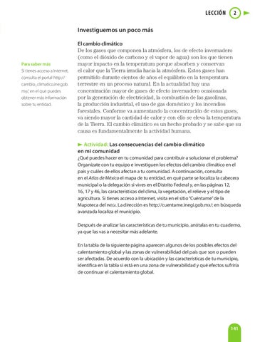 Para saber más Si tienes acceso a Internet, consulta el portal http:// cambio_climatico.ine.gob. mx/, en el que puedes obtener más información sobre tu entidad.