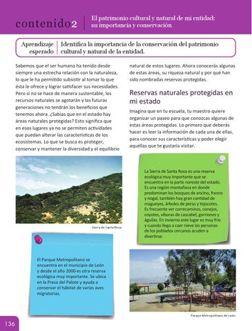Reservas naturales protegidas en mi estado Imagina que en tu escuela, tu maestro quiere organizar un paseo para que conozcas algunas de estas áreas protegidas. Lo primero que deberás hacer es leer la información de cada una de ellas, para conocer sus características y poder elegir aquéllas que te gustaría visitar.