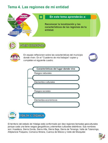 Tema 4. Las regiones de mi entidad Rasgos sociales