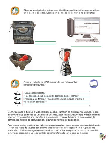Copia y contesta en el "Cuaderno de mis trabajos" las siguientes preguntas: ¿Cuáles identificaste? ¿Por qué crees que los objetos cambian con el tiempo? Pregunta a un familiar: ¿qué objetos usaba cuando era joven y cómo han cambiado?