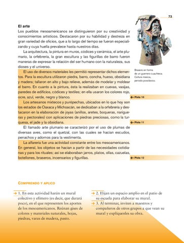 COMPRENDO Y APLICO 1. En esta actividad harán un mural colectivo y efímero (es decir, que durará poco), en el que representen los aportes de los mesoamericanos. Reúnan gises de colores y materiales naturales, hojas, piedras, varas de madera, pasto.