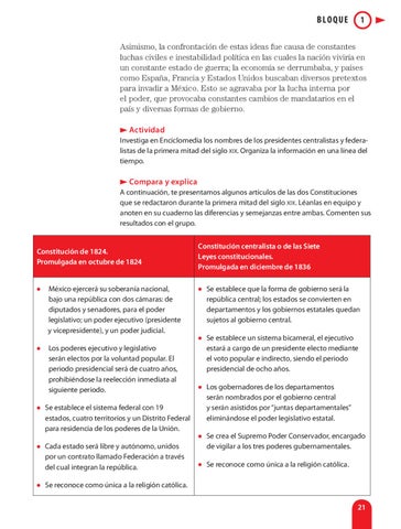 Compara y explica A continuación, te presentamos algunos artículos de las dos Constituciones que se redactaron durante la primera mitad del siglo xix. Léanlas en equipo y anoten en su cuaderno las diferencias y semejanzas entre ambas. Comenten sus resultados con el grupo. Constitución de 1824. Promulgada en octubre de 1824
