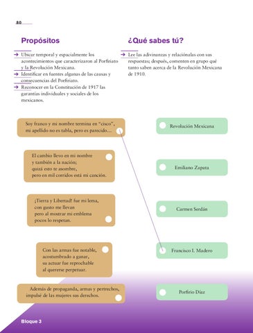 Ubicar temporal y espacialmente los acontecimientos que caracterizaron al Porfiriato y la Revolución Mexicana. Identificar en fuentes algunas de las causas y consecuencias del Porfiriato. Reconocer en la Constitución de 1917 las garantías individuales y sociales de los mexicanos.