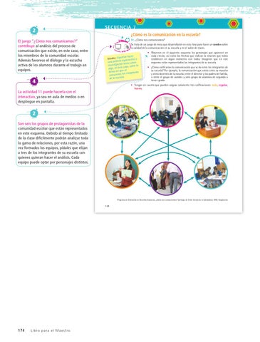 2 El juego “¿Cómo nos comunicamos?” contribuye al análisis del proceso de comunicación que existe, en este caso, entre los miembros de la comunidad escolar. Además favorece el diálogo y la escucha activa de los alumnos durante el trabajo en equipos.
