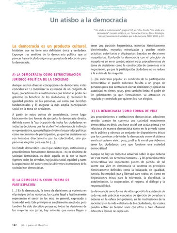 Un atisbo a la democracia “Un atisbo a la democracia”, página 162, es: Silvia Conde. “Un atisbo a la democracia” (versión sintética), en: Formación Cívica y Ética. Antología. México: Movimiento Ciudadano por la Democracia, MCD, 2000, p. 81.