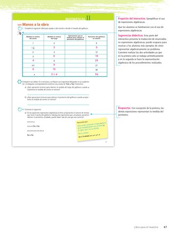 Respuestas. Con excepción de la primera, las demás expresiones representan la medida del perímetro.