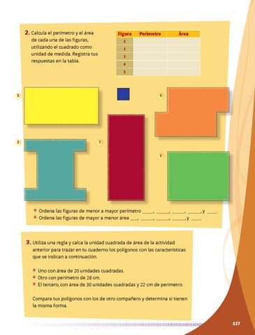 ❖ Ordena las figuras de menor a mayor perímetro ❖ Ordena las figuras de mayor a menor área