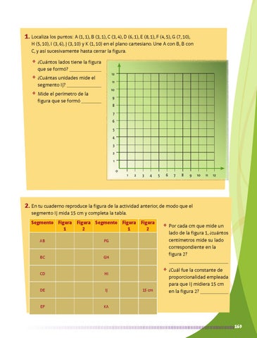 2. En tu cuaderno reproduce la figura de la actividad anterior, de modo que el segmento IJ mida 15 cm y completa la tabla. Segmento Figura Figura Segmento Figura Figura 1 2 1 2 AB