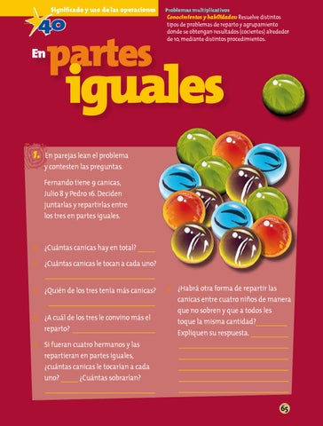canicas entre cuatro niños de manera que no sobren y que a todos les toque la misma cantidad?_________ Expliquen su respuesta. ____________ _________________________________ _________________________________ _________________________________ _________________________________ _________________________________ 65