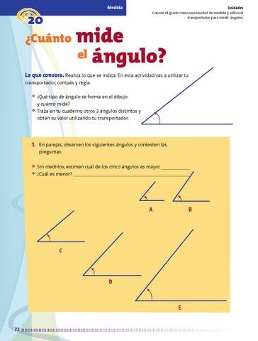 Unidades Conoce el grado como una unidad de medida y utiliza el transportador para medir ángulos.