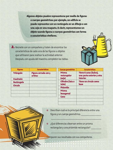 2. Reúnete con un compañero y traten de encontrar las características de cada una de las figuras u objetos que utilizaron para realizar la actividad anterior