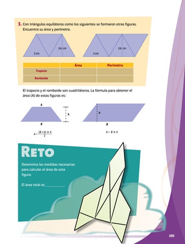 3. Con triángulos equiláteros como los siguientes se formaron otras figuras. Encuentra su área y perímetro.