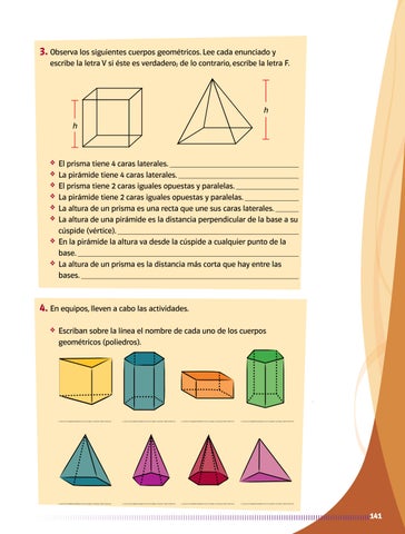 3. Observa los siguientes cuerpos geométricos. Lee cada enunciado y escribe la letra V si éste es verdadero; de lo contrario, escribe la letra F.