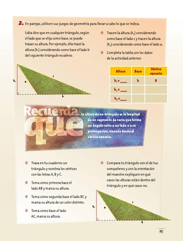 compañeros y con la orientación del maestro expliquen en qué casos las alturas están dentro del triángulo y en qué casos no.