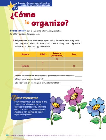 ¿Cómo lo organizo? Lo que conozco. Con la siguiente información, completa la tabla y contesta las preguntas.